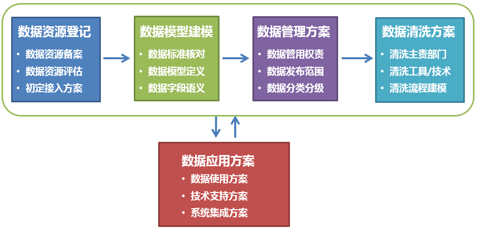 建设符合业务特色的数据治理流程规范,涵盖数据探测、数据建模、数据清洗、数据管理、数据应用全过程,实现数据工作的流程化和规范化。