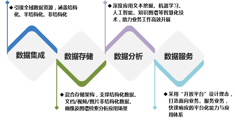 大数据智能分析应用平台,秉承“让数据更好用起来”的数据中台理念,通过数据资产规划建设方法论服务,以及全过程、一站式、可视化的数据治理和智能分析应用软件,为客户快速构建企业级数据资产中心,促进数据资源标准化与安全高效利用,加速数据中心向价值中心转变,高效助力企业数字化战略转型。