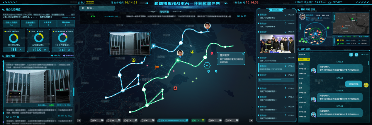 根据移动指挥作战的特点,结合业务工作的需求,构建用于指挥中心的大屏实战指挥系统以及用于外线人员的移动端作战支持系统。